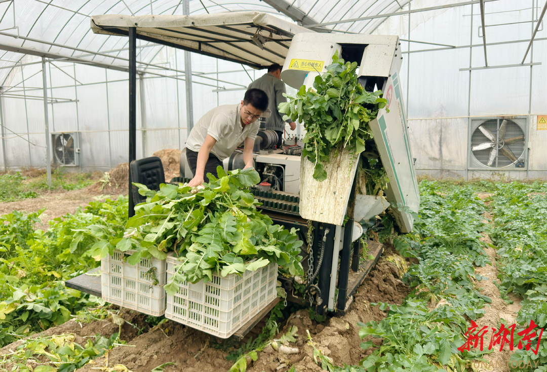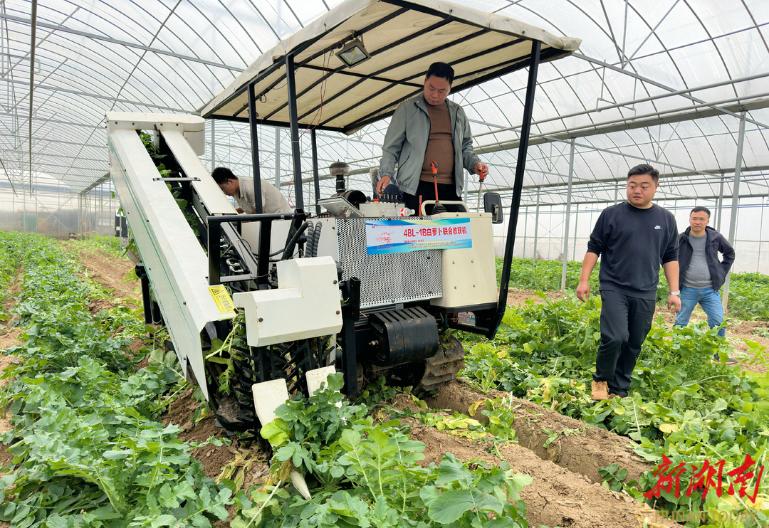 湖南日报12月4日讯(全媒体记者 胡盼盼)记者今天在浏阳市沙市镇沙市村的蔬菜大棚里看到,湖南农业大学自主研发的白萝卜收获机在地里走一圈,就把满地白萝卜收干净了。湖南农业大学机电工程学院教授刘大为称,这是我国首台适合南方地区作业的白萝卜收获机。